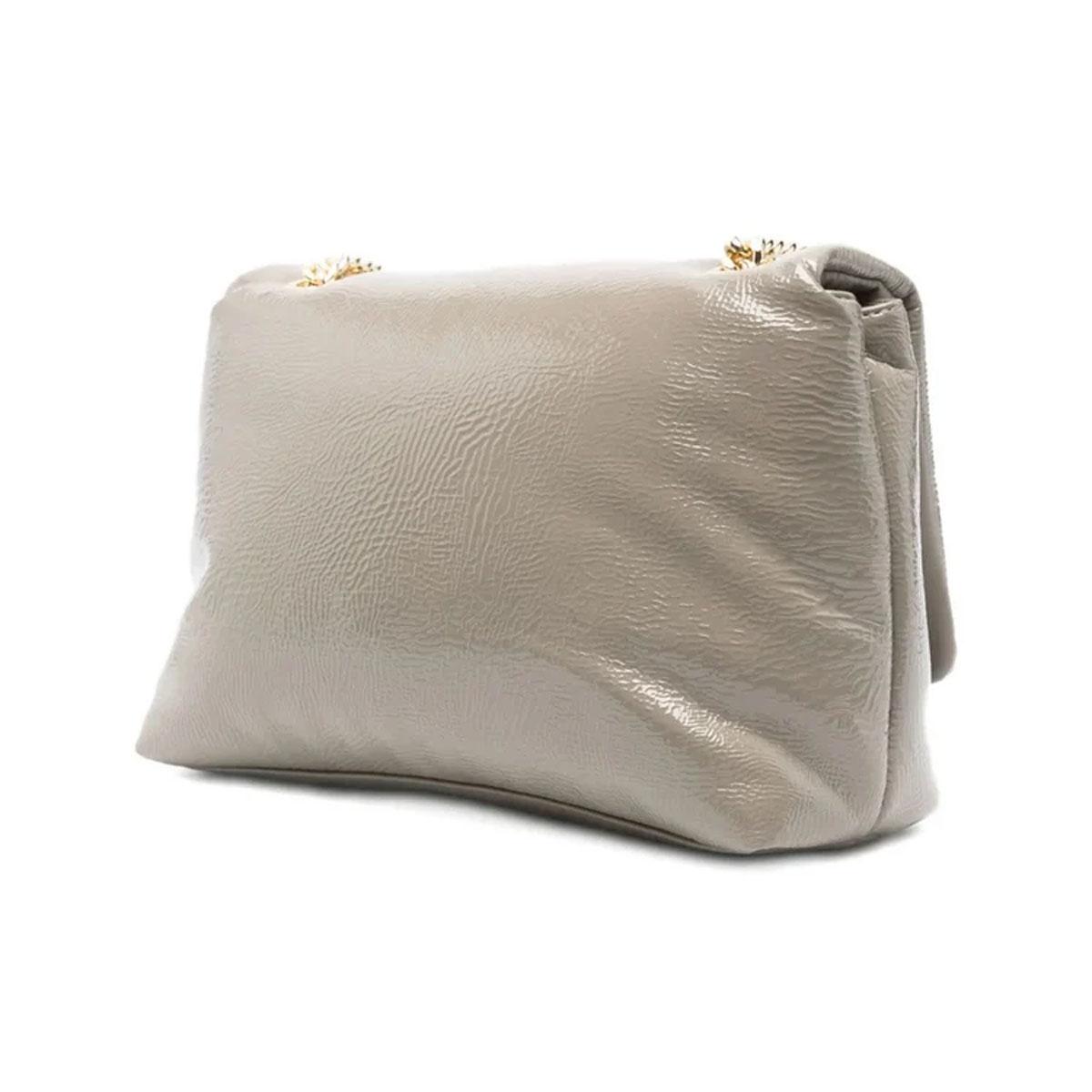 Borsa a spalla dalla silhouette compatta ed elegante realizzata in materiale tecnico con texture morbida al tatto.La struttura rigida valorizza la forma essenziale con dettagli metallici raffinati come la tracolla a catena e il logo frontale.Il design è completato da una chiusura con pattina e bottone magnetico per una protezione sicura dello scomparto interno.La fodera in poliestere avvolge uno spazio ben organizzato con pratica tasca interna.Le dimensioni 11,5 x 18 x 27 cm la rendono perfetta per ogni occasione dal giorno alla sera.Una scelta sofisticata per chi cerca stile e funzionalità in un unico accessorio.