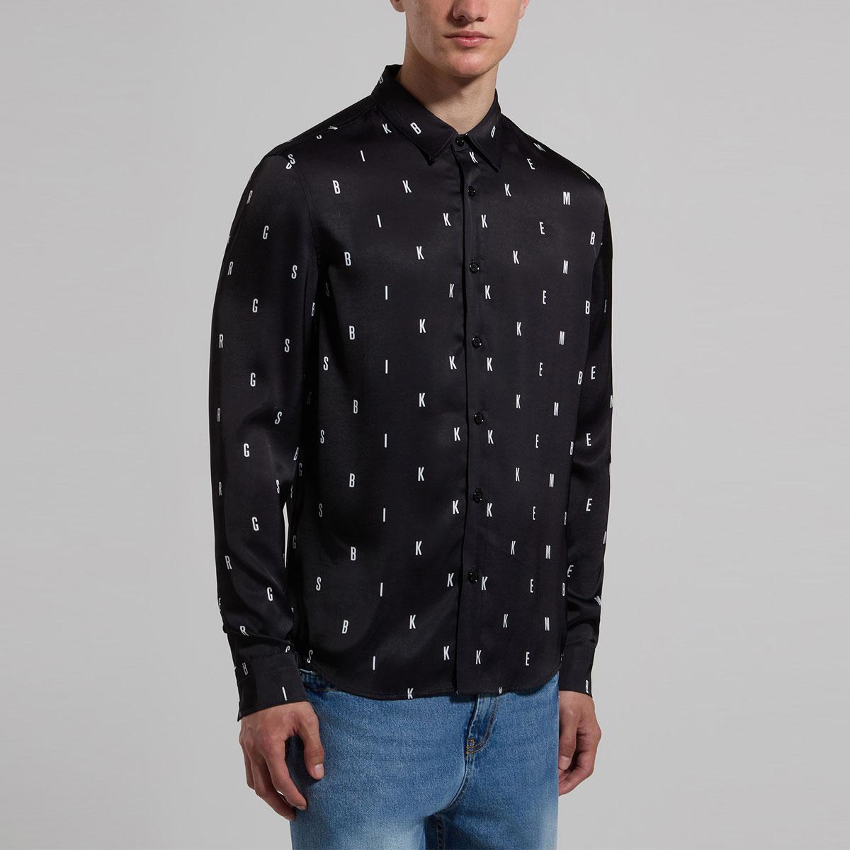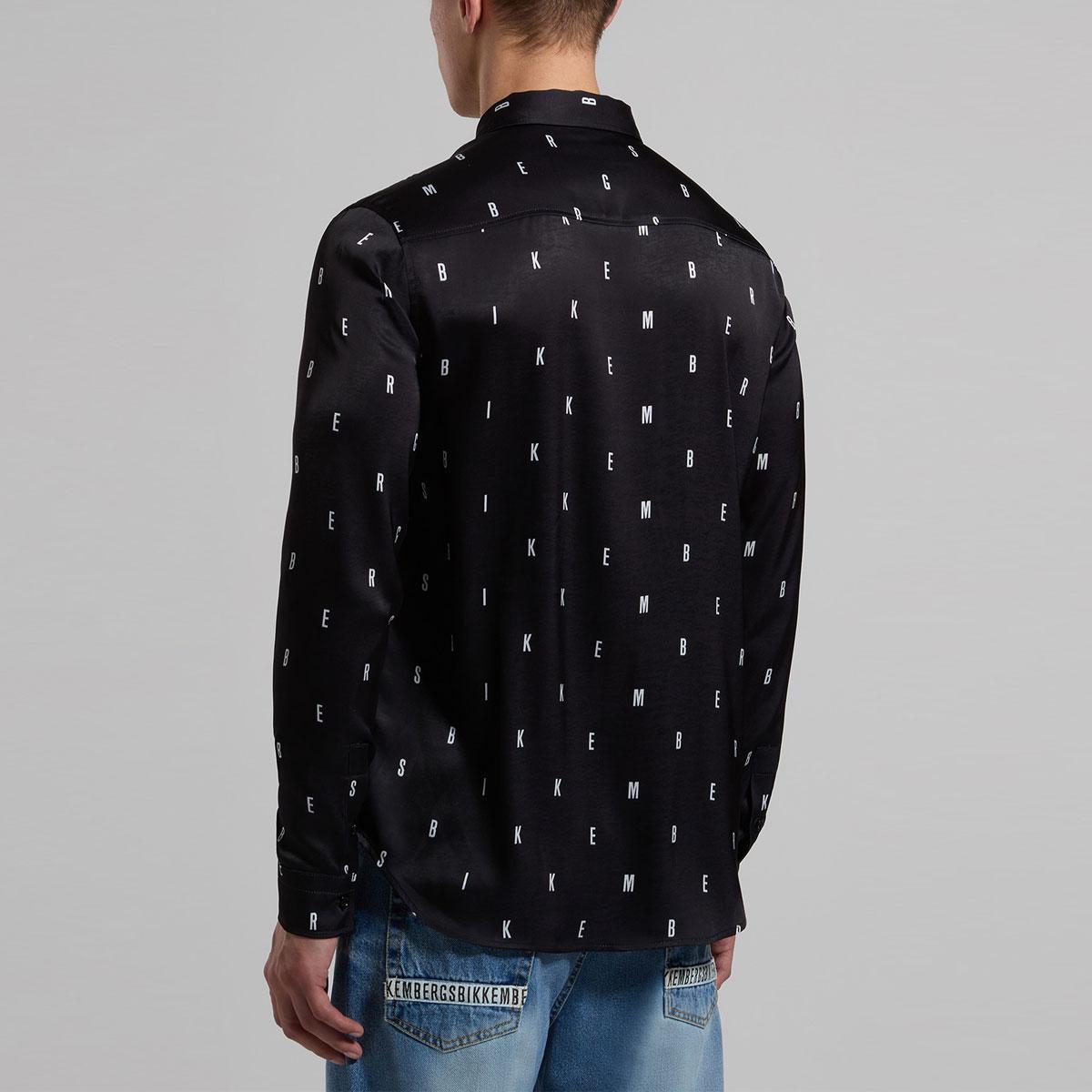 Camicia da uomo realizzata in satin, decorata dalla stampa all-over composta dal lettering del brand. La camicia presenta fondo stondato. Vestibilità slim.