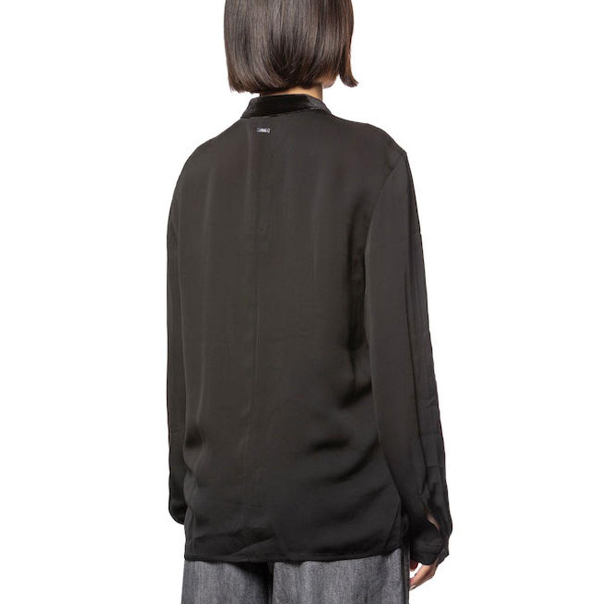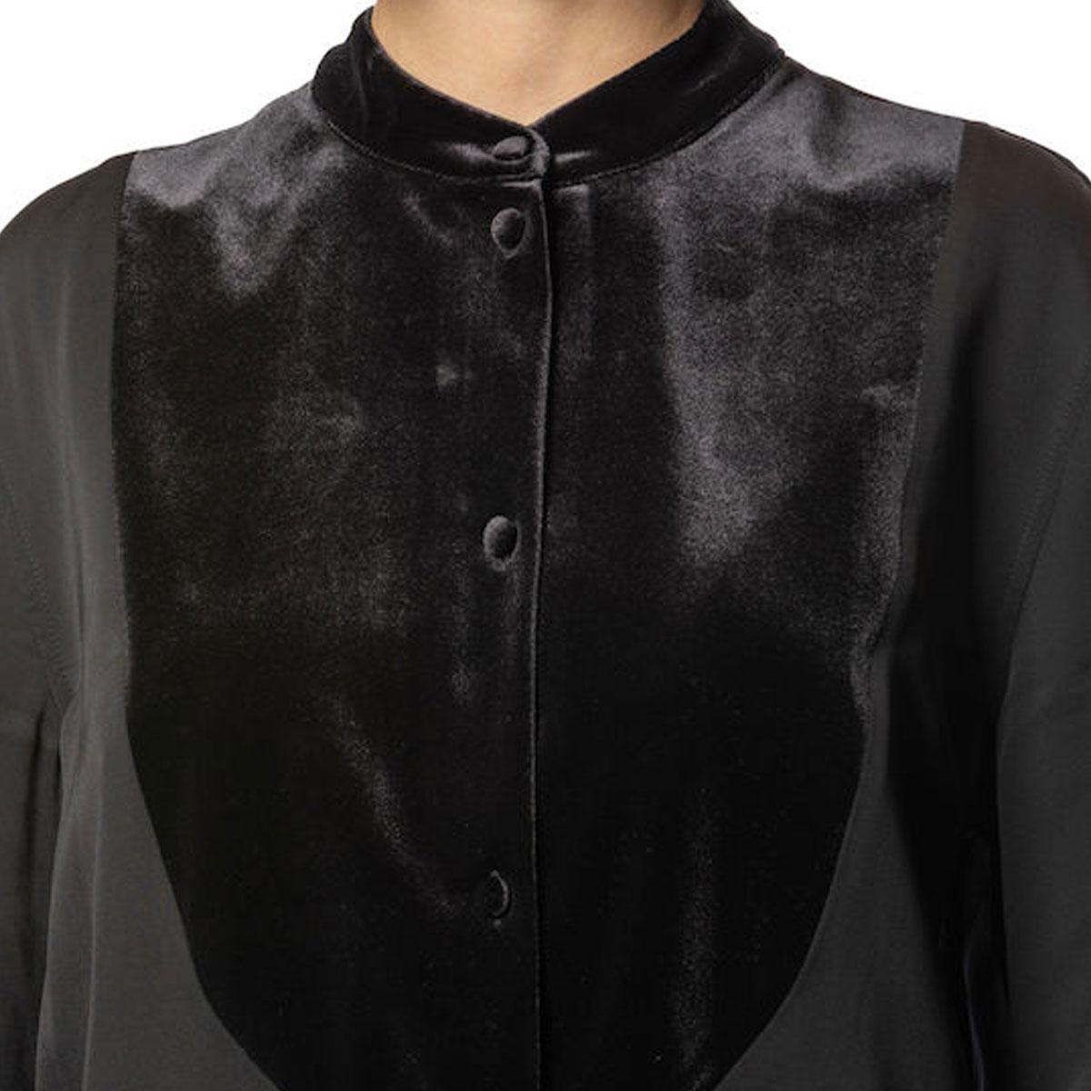 Questa camicia è realizzata in crepe de chine leggera di viscosa. Il modello presenta fiocco al collo con applicazione monogram tono su tono. Le maniche lunghe e lo scollo morbido completano la camicia.