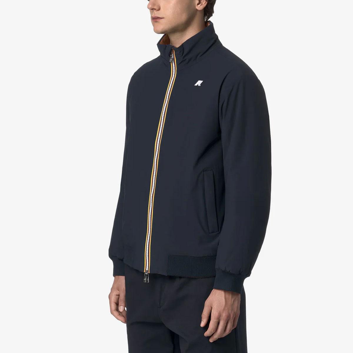 Arsene è una giacca da uomo corta e reversibile, con un lato in poliestere elasticizzato idrorepellente e un lato in poliestere antivento dal colore a contrasto. Ideale per la mezza stagione, la giacca è dotata di imbottitura leggera in ovatta, cuciture termonastrate isolanti, chiusura con zip e bordi a costine.
