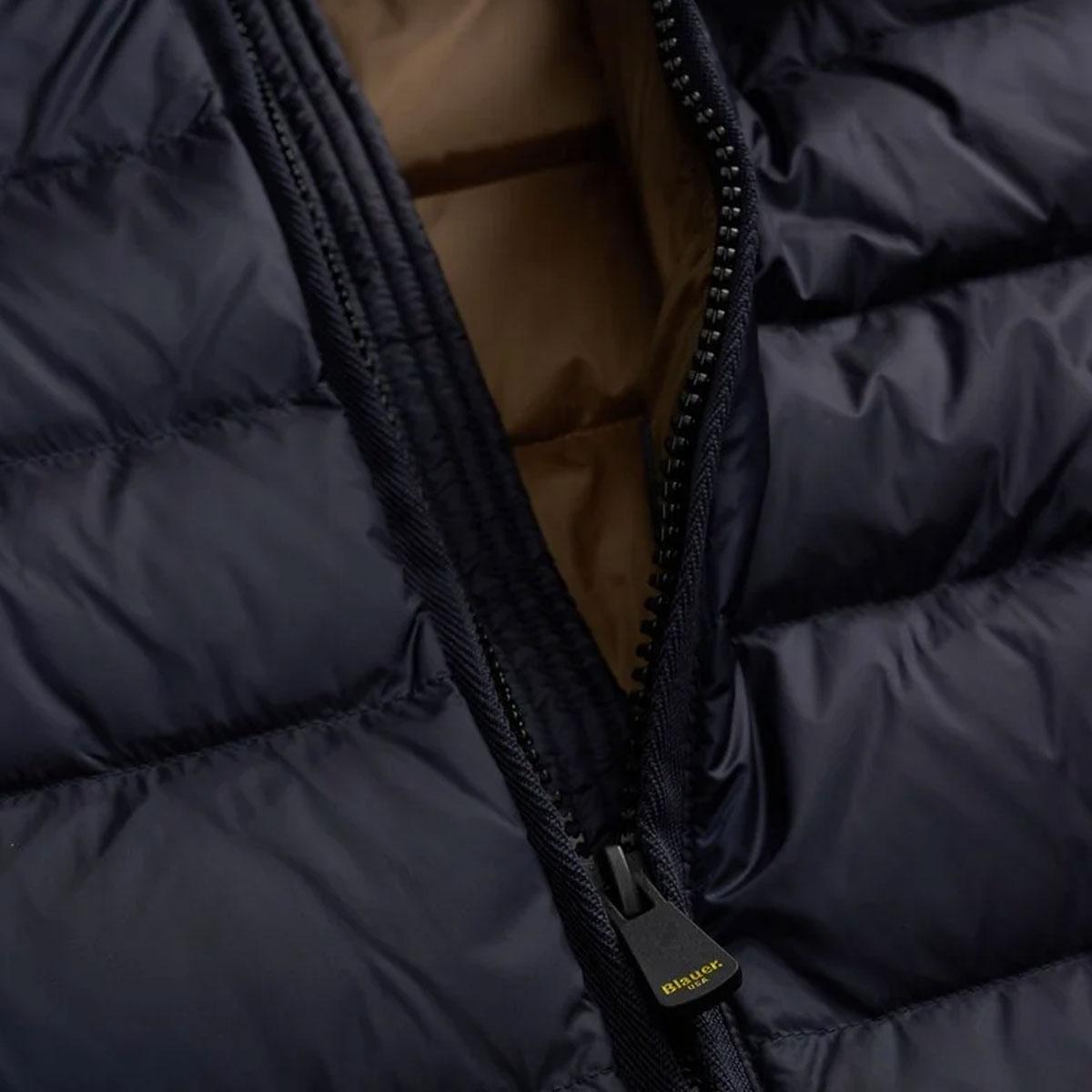 Piumino trapuntato a righe orizzontali. Capo iconico Blauer con imbottitura naturale in piuma, calda e non ingombrante; dedicato a chi vuole essere sempre alla moda in ogni occasione.