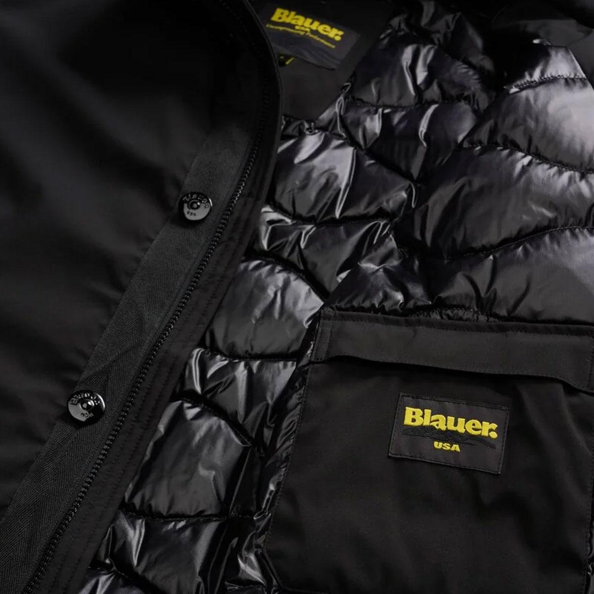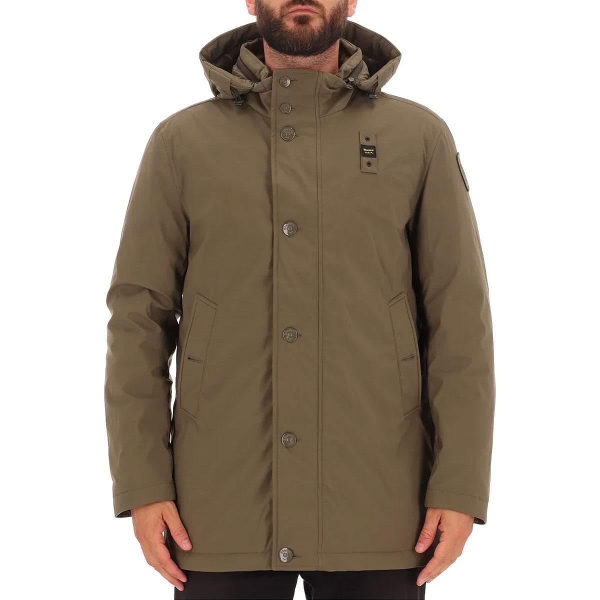 Parka lungo in neoprene liscio idrorepellente con collo alto removibile tramite zip. Imbottitura naturale calda ma non ingombrante. Capo iconico Blauer ad inspirazione militare.