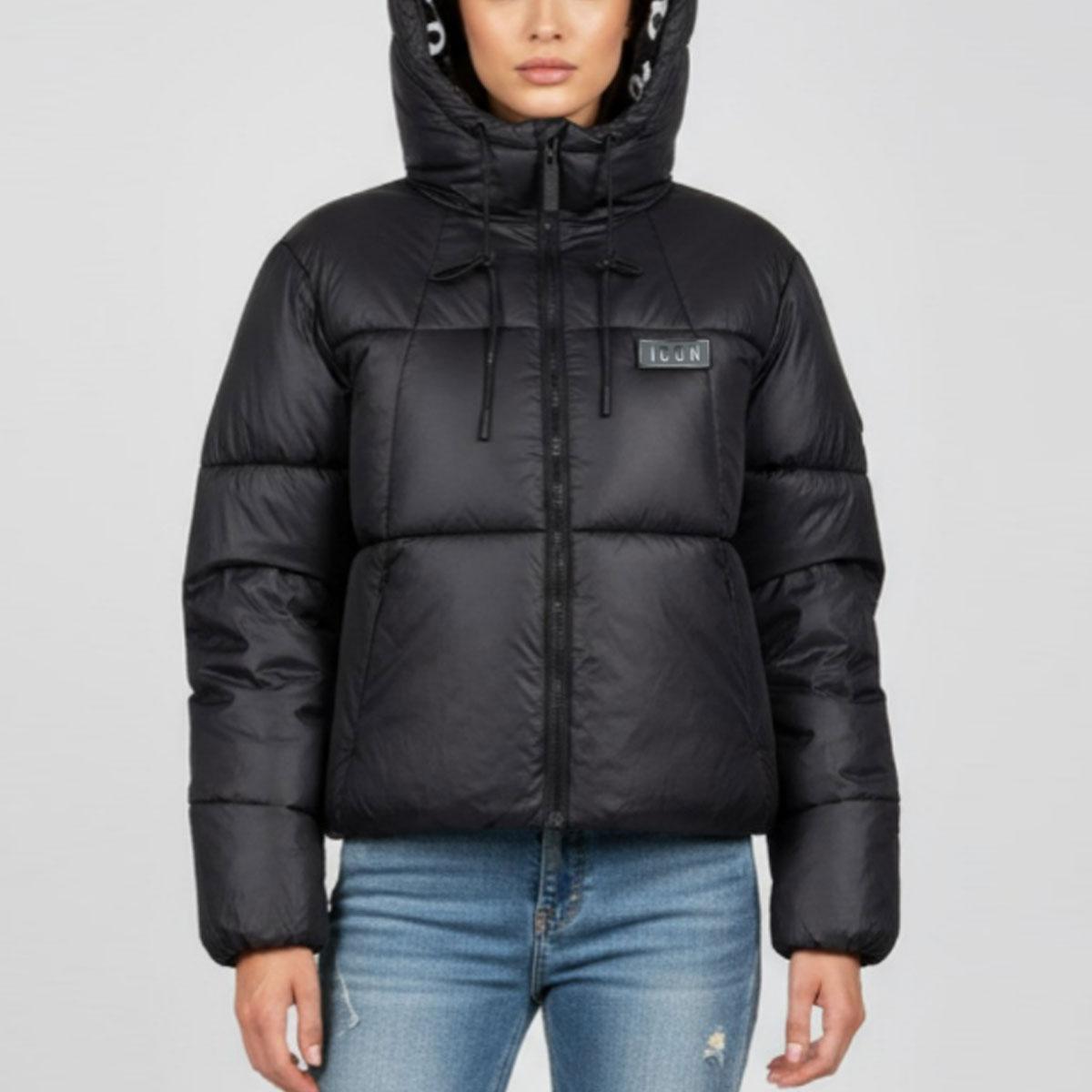 Icon piumino da donna, imbottito in poliestere 100% riciclato, con zip frontale, tasche laterali e patch logo gommata sul davanti. Perfetto per un look sportivo e moderno