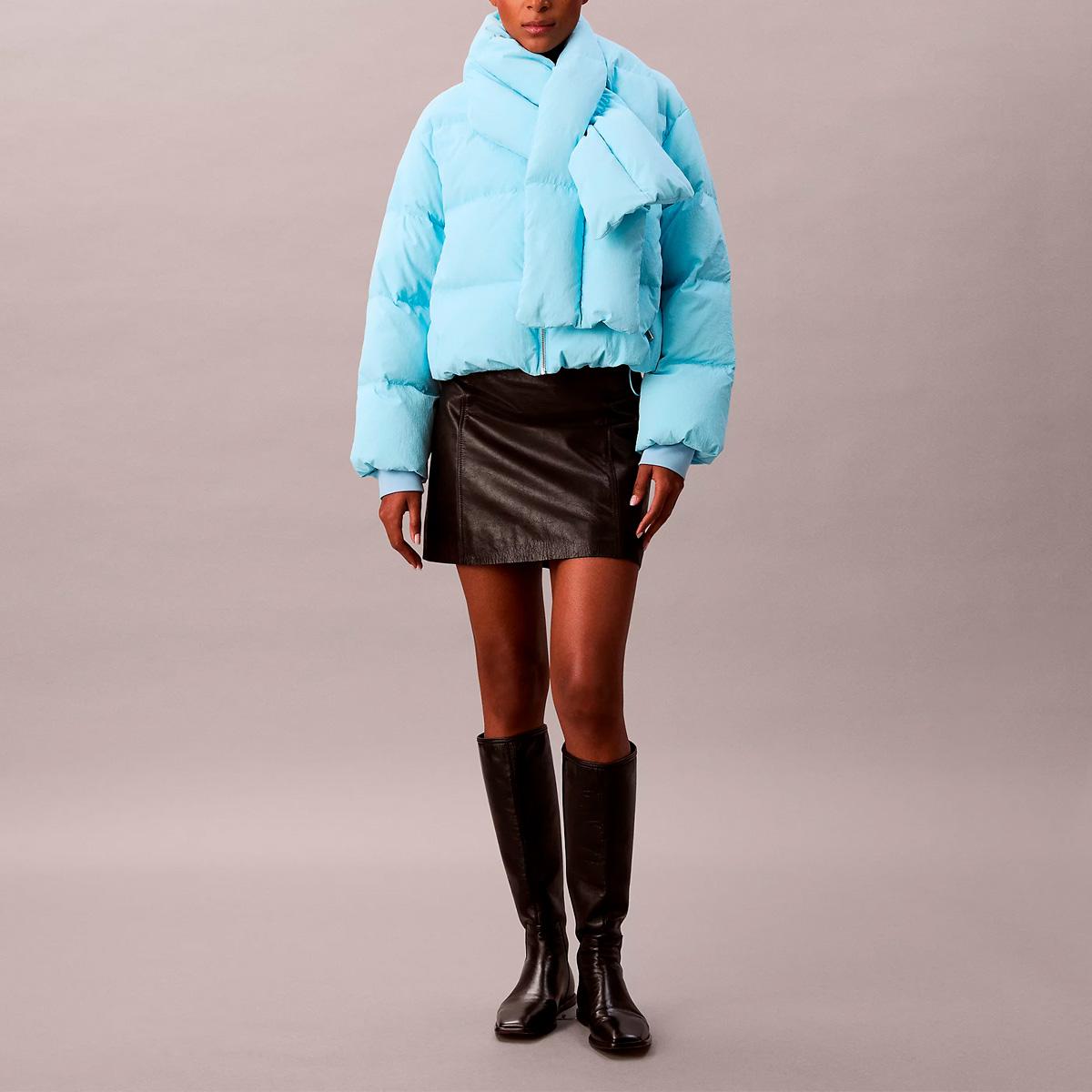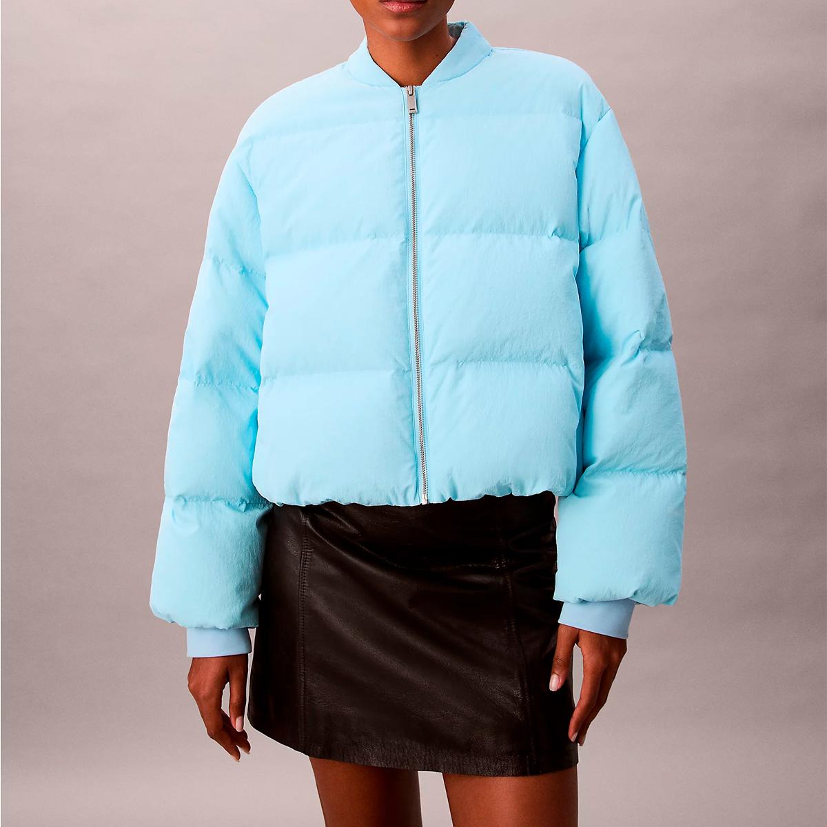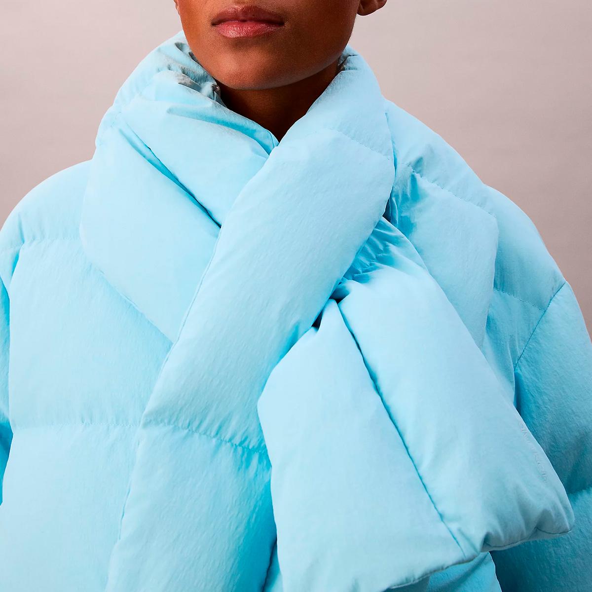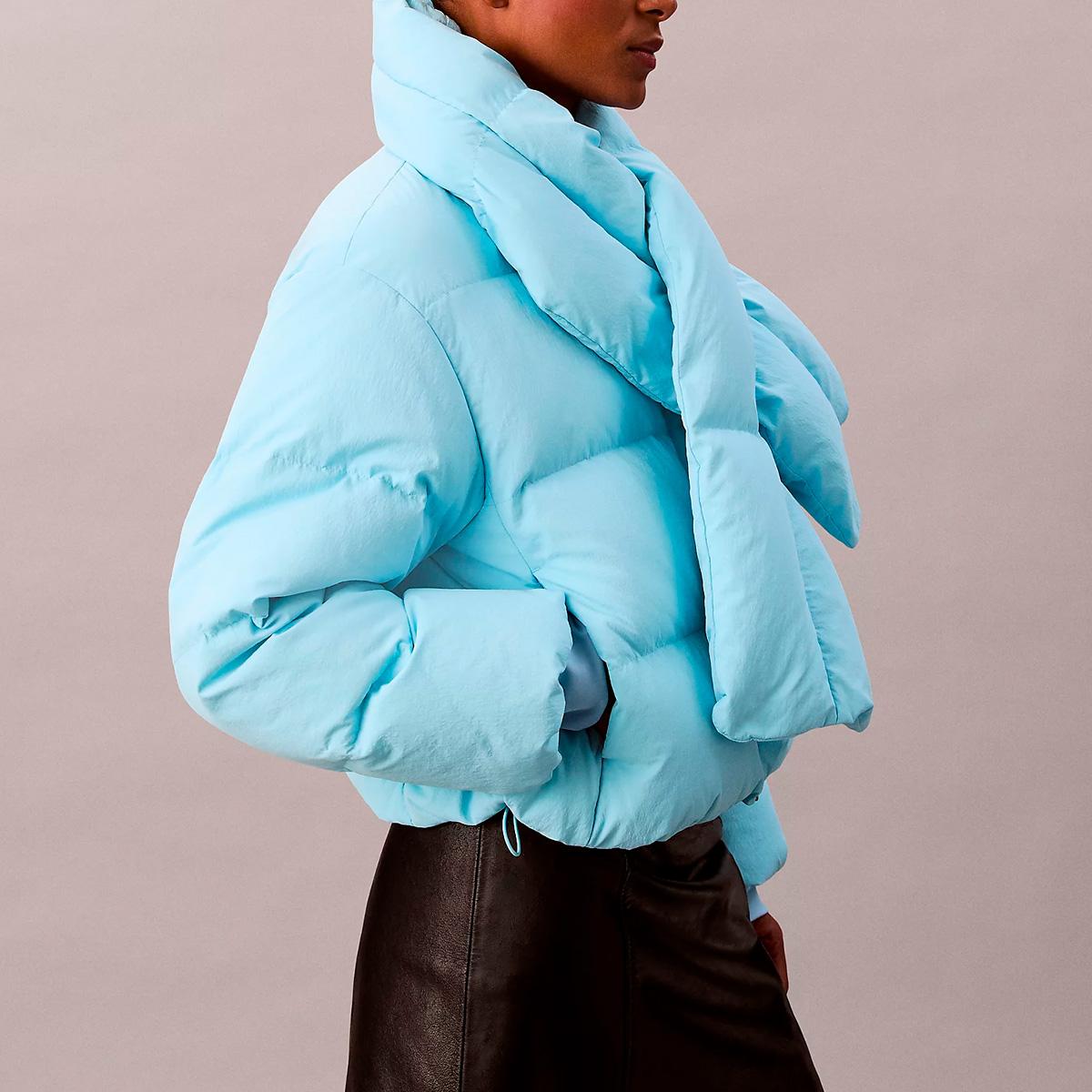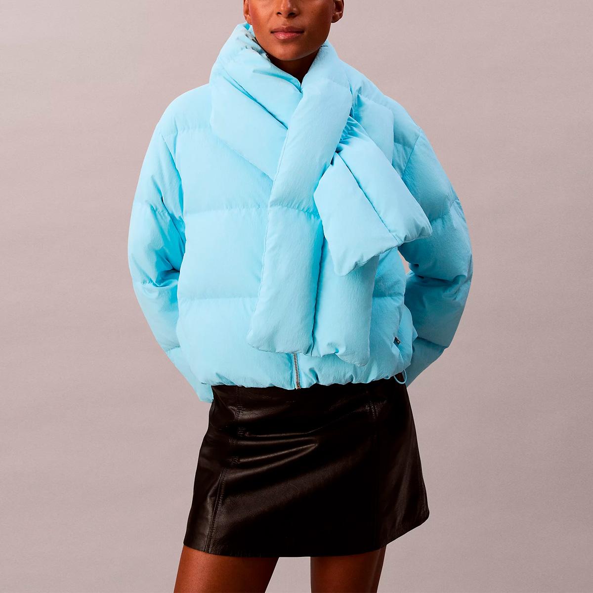 Nylon increspato, trapuntato, tessuto impermeabile, morbido colletto alla coreana, chiusura con zip, tasche profilate in vita, sciarpa incorporata, risvolti in maglia a costine, isolamento in piumino Forma e vestibilità, taglio regolare, lunghezza corta