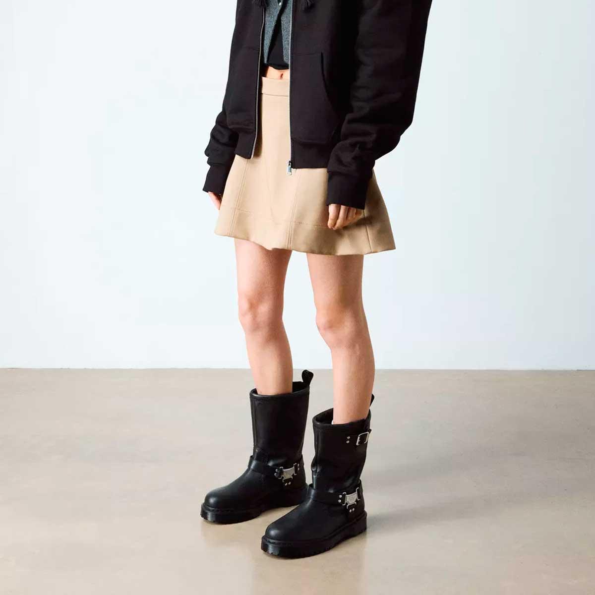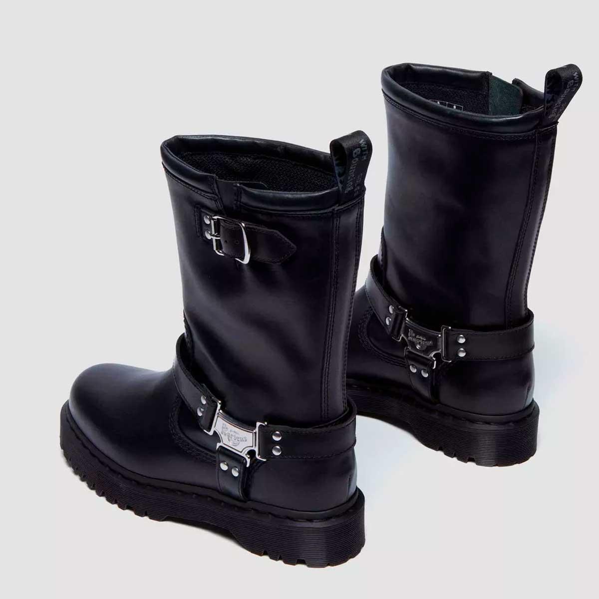 Fai ruggire il motore. Il nuovo stivale Biker Anistone Hi è realizzato in pelle Wanama e include dettagli d'ispirazione industriale, quali placche in metallo e fibbia regolabile. Poggia su una suola platform Bex a motivo scanalato. Wanama è una pelle leggera con una finitura satinata e lucida. Puliscila con un panno umido e prenditene cura con il lucido da scarpe Dr. Martens Per puntare in alto ogni giorno. La suola Bex presenta una trama dentellata che dà qualche centimetro d'altezza in più. Pensata per mettere alla prova i tuoi limiti. Le nostre linee con guardolo Goodyear sono sigillate a caldo a 700°C e rinforzate con le nostre caratteristiche cuciture La circonferenza del polpaccio aumenta a seconda della taglia dello stivale. Le misure sono orientative; taglia 36: 32,7 cm - taglia 48: 43,5 cm.