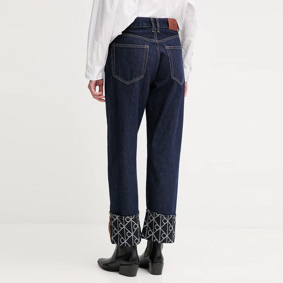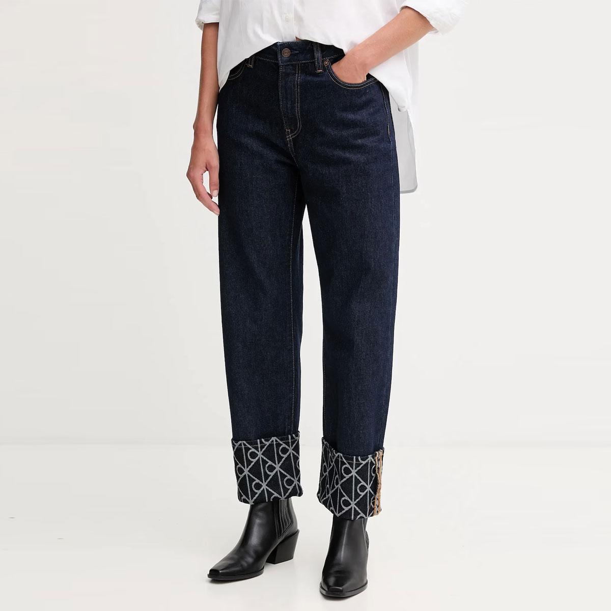 Un tocco moderno su uno dei modelli preferiti degli anni '90; baggy jeans Calvin Klein a vita bassa, che cadono morbidi sui fianchi, con gambe ampie e dritte.