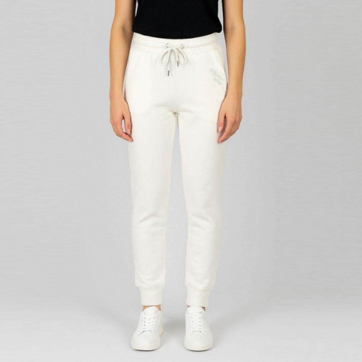 Markup pantalone in felpa da donna in misto cotone, perfetto per il tempo libero e lo sport. Dotato di tasche laterali, laccio regolabile in vita e scritta logo ricamata accanto alla tasca. Ideale per un look casual e di tendenza